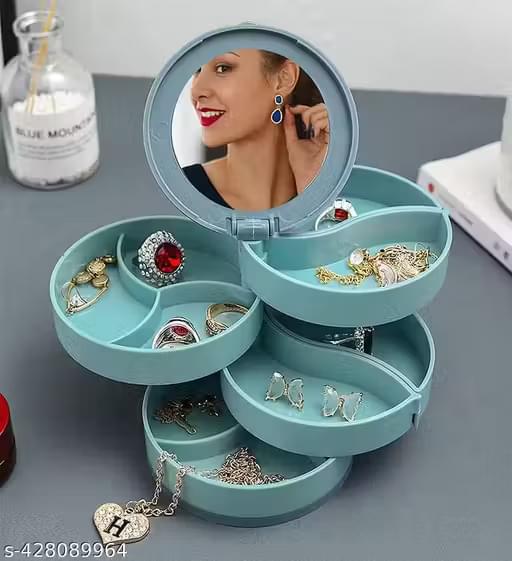 Crafted from durable ABS plastic with a soft matte finish, it’s ideal for storing rings, earrings, bracelets, necklaces, nose pins, and other small accessories. The smart 360° rotating tray system allows you to access all compartments quickly, without any mess or clutter.