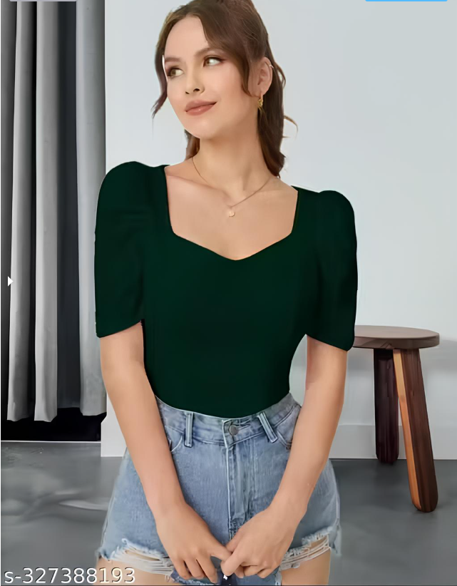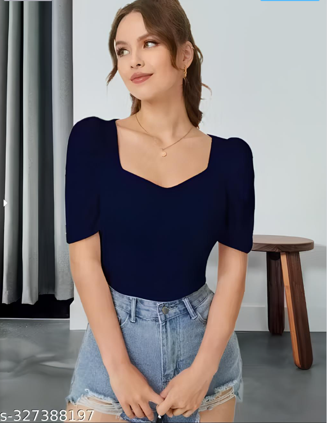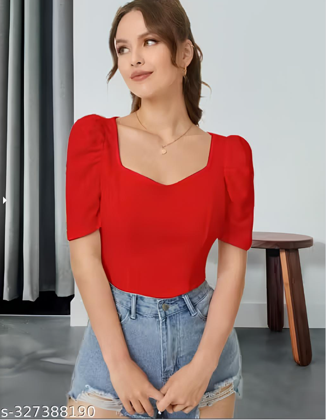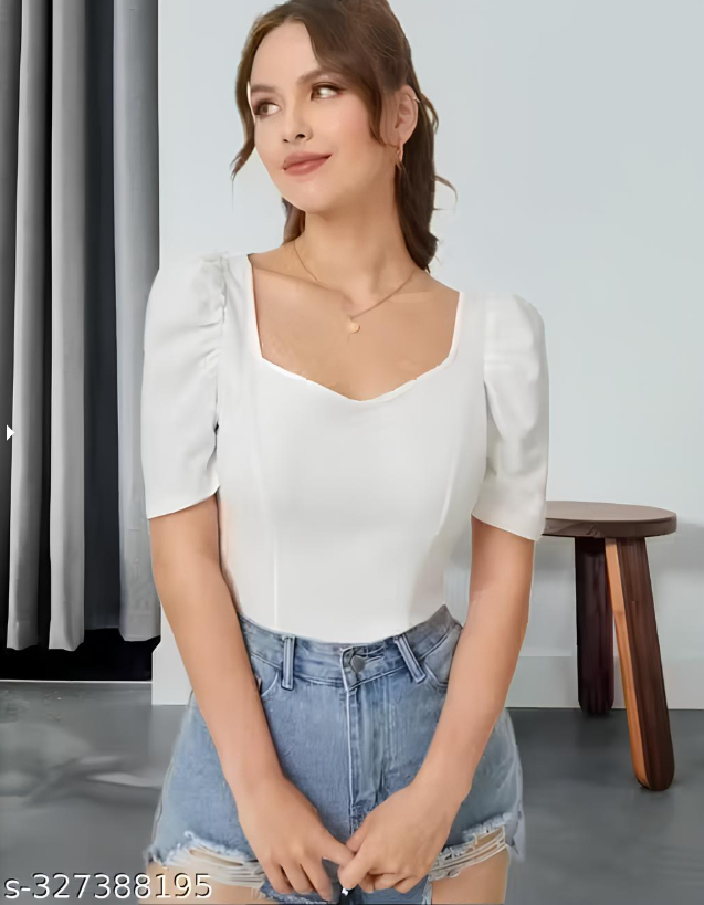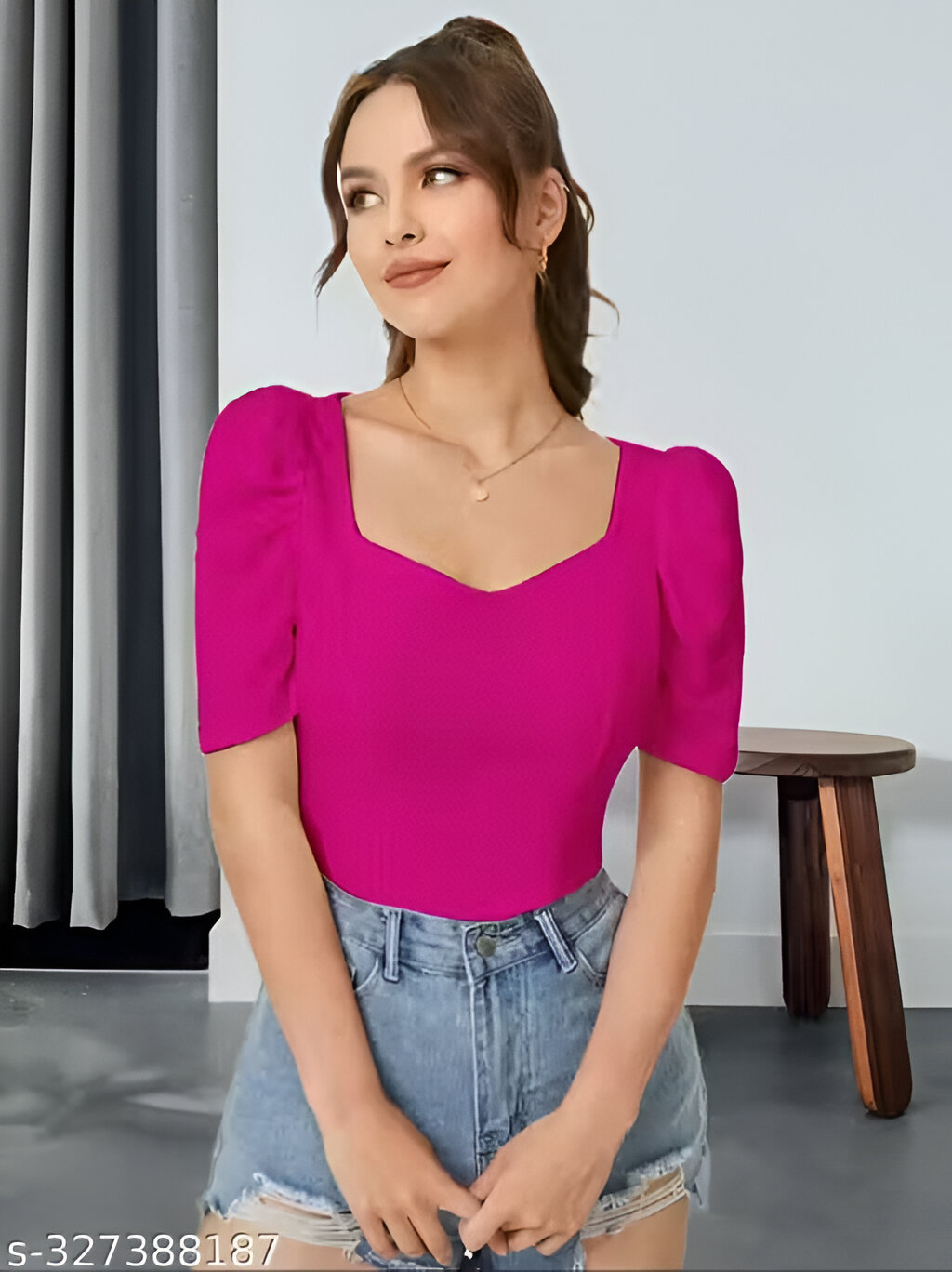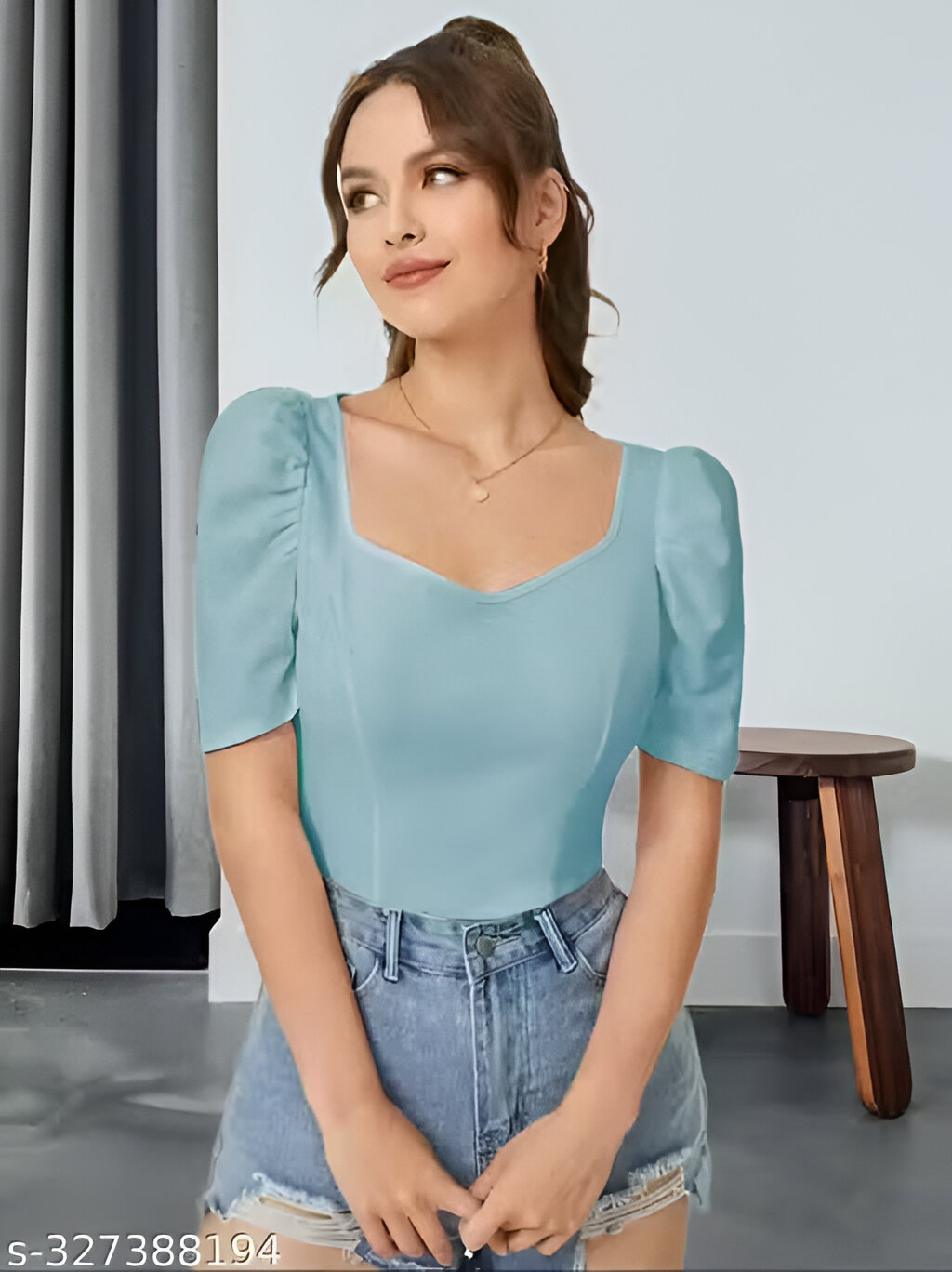 Name : Maheshvi Casual Polyester Blend SweetHeart Neck Puff Sleeves Stylish Top