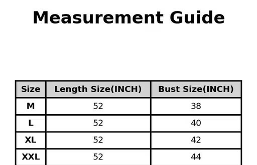 XL (Bust Size : 42 in, Length Size: 52 in)